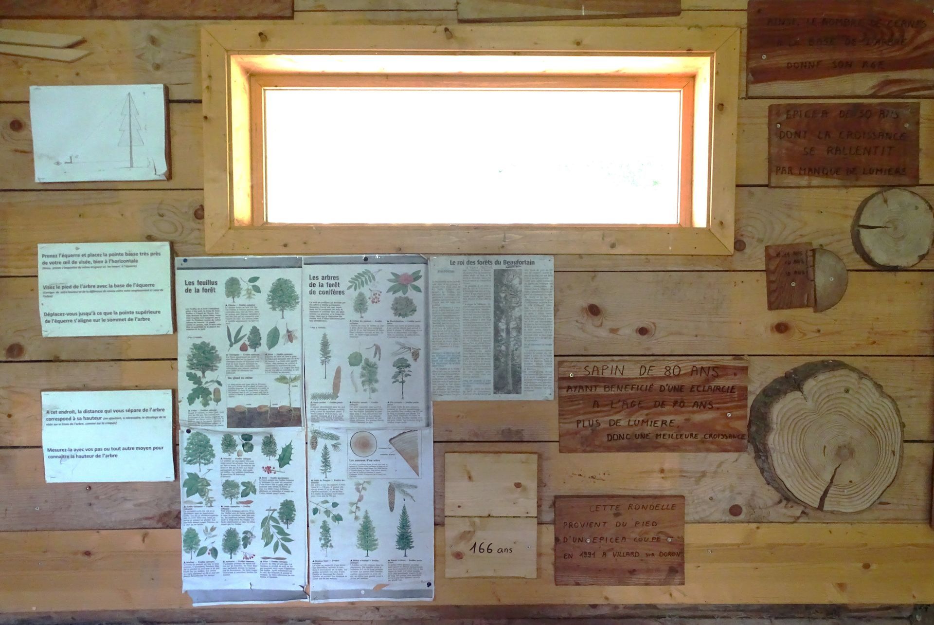 Vous passerez du temps dans le chalet à découvrir la vie des arbres, comment mesurer leur âge ou leur hauteur ; et vous jouerez à les reconnaître à leur feuillage ou à leur écorce.